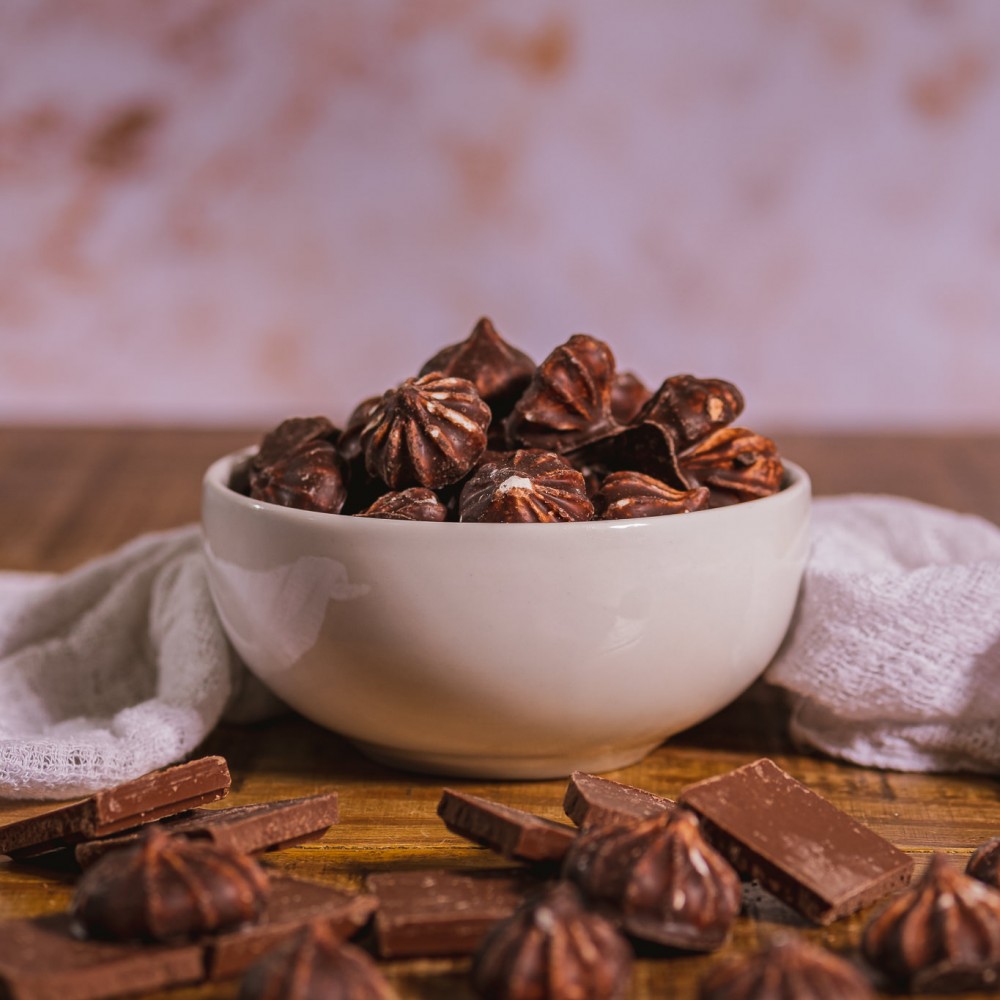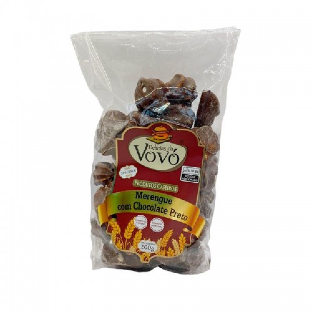Merengue com cobertura de chocolate preto doce leve e crocante, feito com claras em neve e finalizado com uma camada deliciosa de chocolate preto.